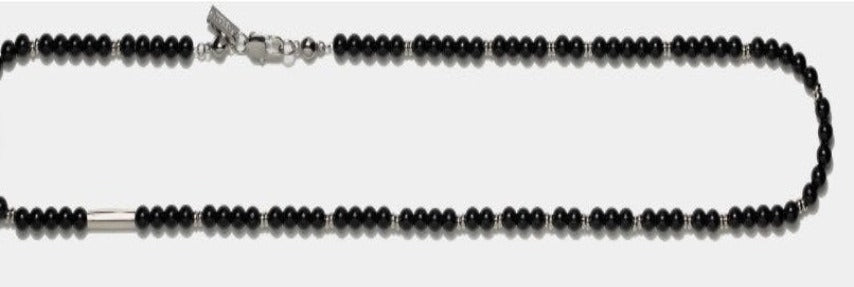 The Onyx necklace is a must-have addition to any collection, featuring polished onyx beads and stainless steel accent pieces.