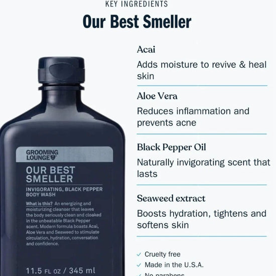 Voted "Best Smelling" Body Wash by The Huffington Post and others, our energizing and moisturizing cleanser leaves the body seriously clean and cloaked in an unbeatable Black Pepper scent. You deserve to wake up and put a pep in your step and a crown of good-smelling allure around your body. A cult favorite for its cleansing, lathering and long-lasting properties. Energizing and nose-turning aroma sticks with you all day -- not just in the shower. Probably the best men's body wash on the planet. Paraben Free and packed with Acai, Aloe Vera & Black Pepper Oil.